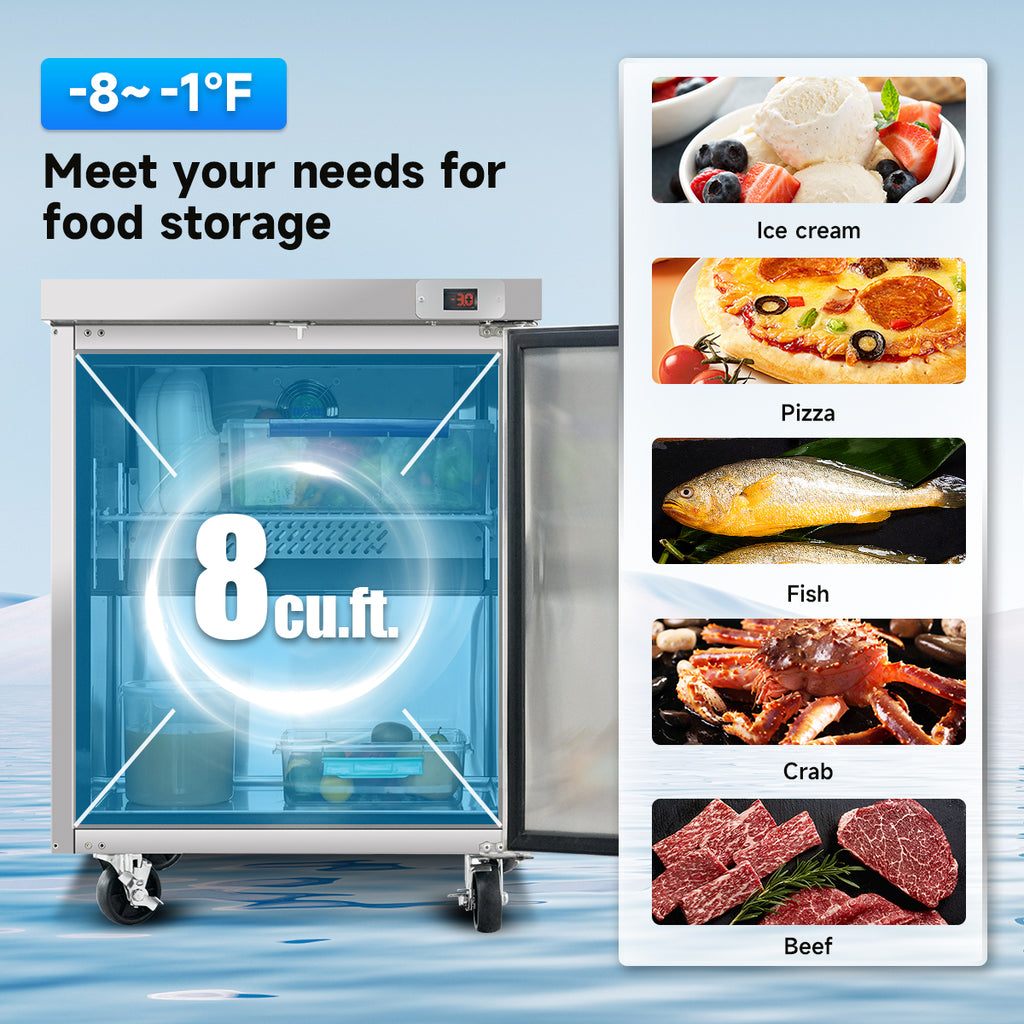 - Space-Saving Storage Design: The 8 Cu Ft interior includes adjustable shelving with a load capacity of up to 155 lb, supporting organized storage of frozen ingredients in busy, space-conscious kitchens.